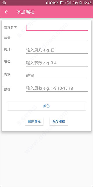 4、课程添加:输入课程名称、上课时间、开始日期等信息,点击确定即添加完成;