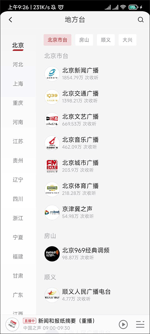 不知道小伙伴们有没有和小编一样,喜欢听听其他地区的电台,小编就喜欢听重庆那边的一个音乐电台节目,那我们不在想听电台的区域我们该怎么办呢?云听为了解决大家的烦恼,通过网络电台的优势让大家可以收听其他地区的电台,那么现在就由小编带来大家看看如何收听其他地方的电台吧。