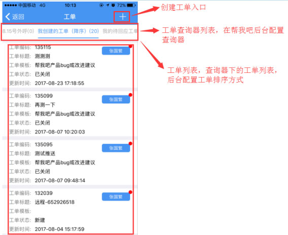 1、工单主界面