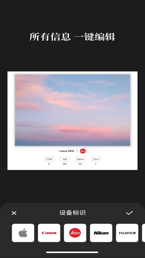 边框水印大师app是一款能够自动识别图片exif信息,提供多种高级水印模板的app,是一款水印添加神器,这款软件适用所有品牌的手机,它让摄影师可以方便快捷的为自己的作品添加上专属水印,用普适、优雅的水印适配您的大多数照片,为自己的作品加上自己的名字,让世界认识照片背后的你。它不但能设置高级水印,更可以一键批量添加,还能制作自己的水印,让你的照片更有高级感,省时又高效。