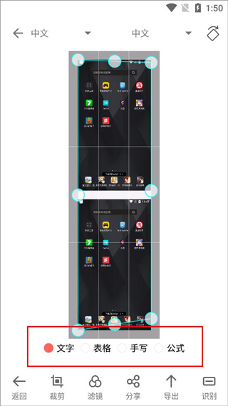 2、打开照片后,选择识别转换为文字、表格、手写或者公式;