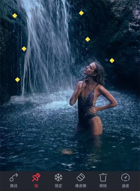 以瀑布为参照物,添加锚点让它流动起来。