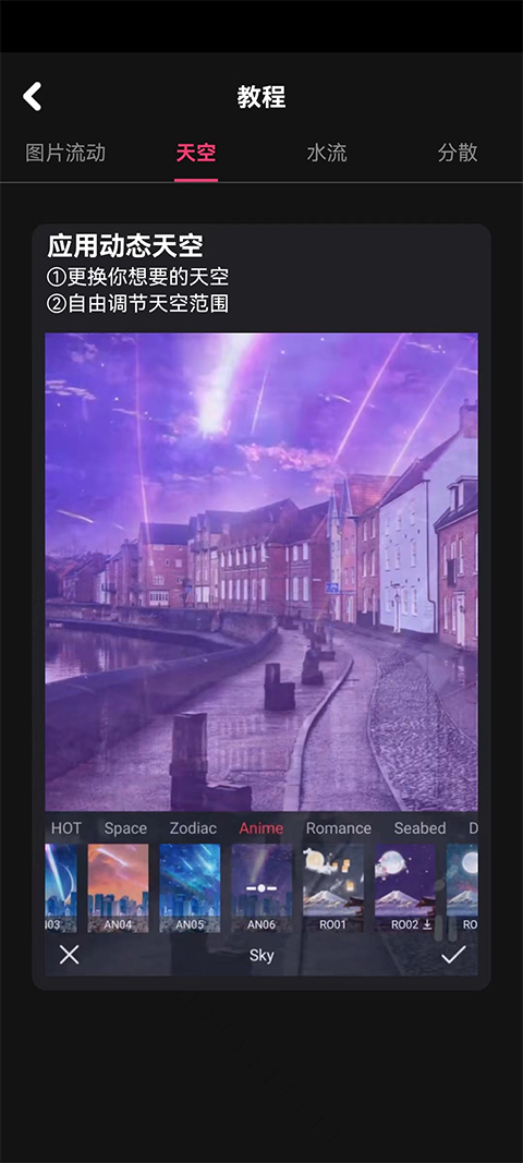 市面上的修图软件多如牛毛,它们只能将静态图片修改为更加好看的静态图片,有没有想过要处理为动图呢?今天小编推荐的是动影AE动态软件手机版,这是一款专业的动态图片编辑制作软件,能够帮助用户将一张静态图片变成更加好看的动图,可以为你的自拍添加更多的特效,包含天空、水流、镜头运动、文字、叠加、抖动等等,只需选择好心仪的特效,便可快速打造一张炫酷的动态图片。