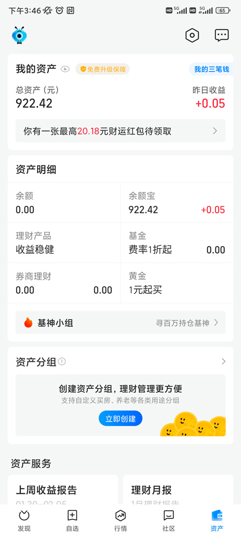 资产结构简单明了,每日收益一目了然,支持自定义创建资产分组,资产管理更清晰。