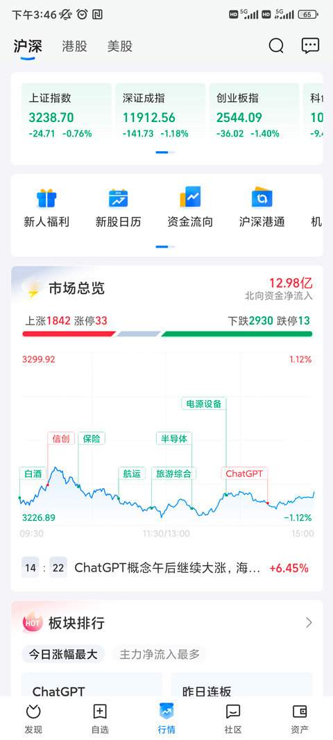 沪深、港股、美股市场行情一应俱全,快速获取股票涨跌排行,了解市场动态。