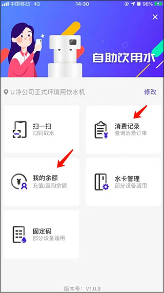 4、在服务主体下任意设备的触摸屏上点击输入取水码即可用水。