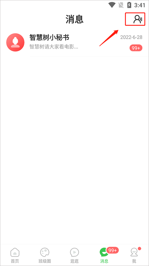 1、打开智慧树家长端app,在底部菜单栏点击进入消息界面。