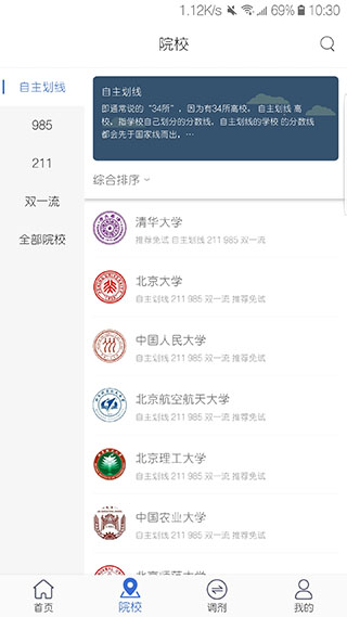 3、返回到主界面上来,我们可以看到各大有名的学校;