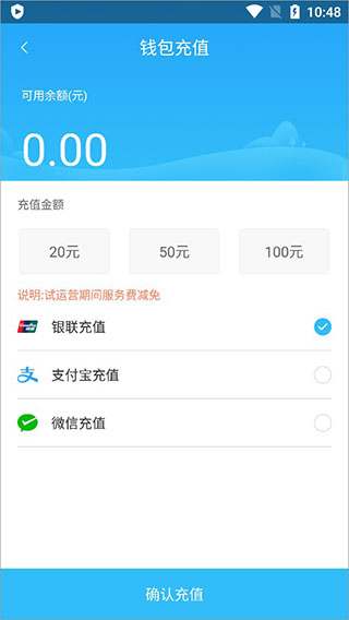 4、点击我的钱包-立即充值,可通过微信、支付宝、银联充值。