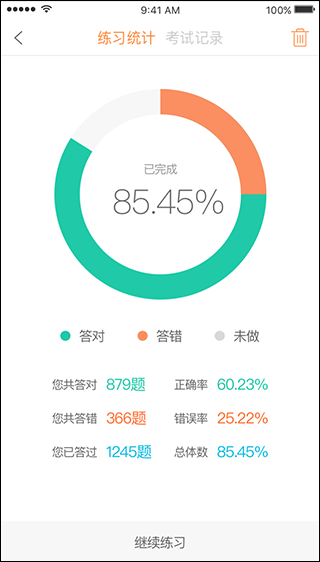 4、系统还会自动为用户统计详细的练习情况,以便更好的了解自己的学习进度。