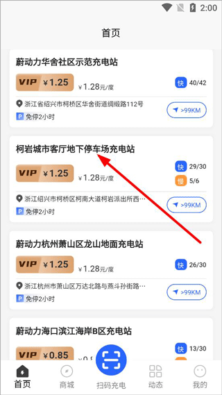 3、打开地图导航,驱车到充电桩位置后,打开扫码充电即可。