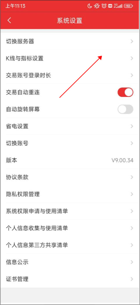 2、在系统设置里,找到K线与指标设置并点击。