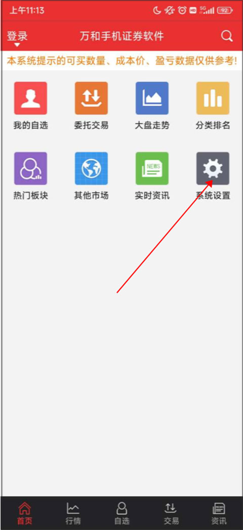 1、下载安装软件,进入首页,点击系统设置。