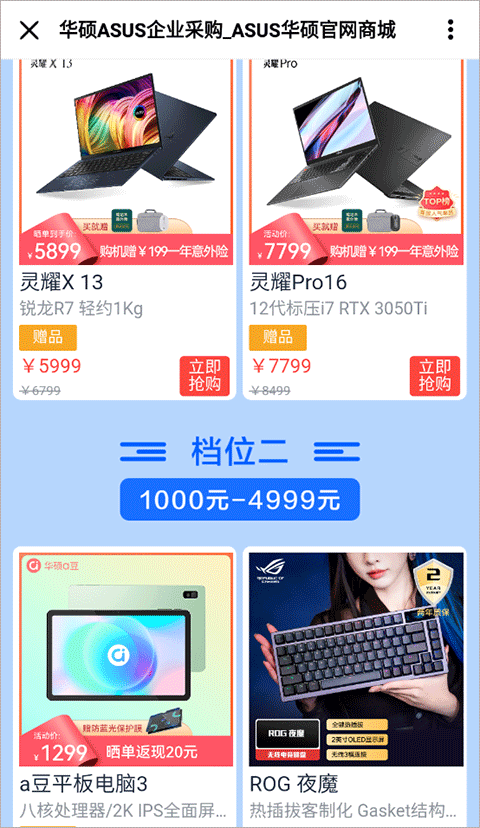 3、提供华硕旗下丰富的商品,包括笔记本电脑。