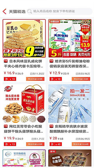 4、点击天猫精选就能看到大量的商品,以及优惠券员,支持在线购买: