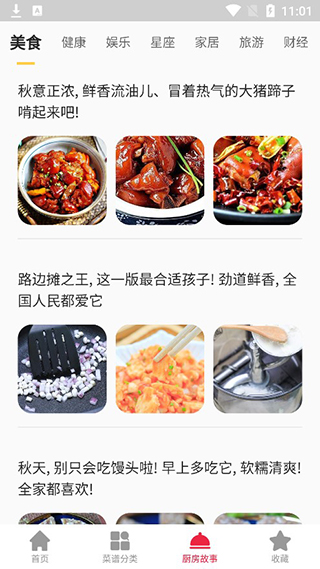 3、在厨房故事中可以阅读到很多用户分享的菜谱,各种类型都有;