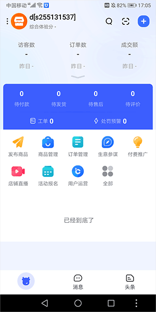 1、手机登录千牛淘宝卖家版app(即千牛app),然后就可以进入到千牛工作台手机版界面,用户可以看到整个工作台界面和pc端基本一样,用户可以实时看到自己的生意状况