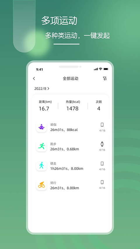 5、健康手环:用户可以通过绑定蓝牙手环的方式来记录自己的运动情况,这样即使手机不在身边也不会影响到系统及时为用户制定的种种运动计划;