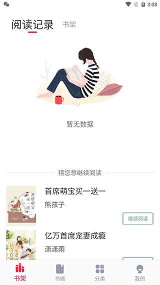 4、如遇到忘了自己之前看的什么小说,可以在阅读记录里看。