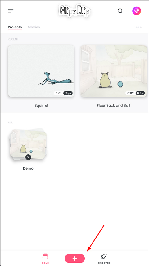 1、打开FlipaClip官方版,进入后点击下方+号;