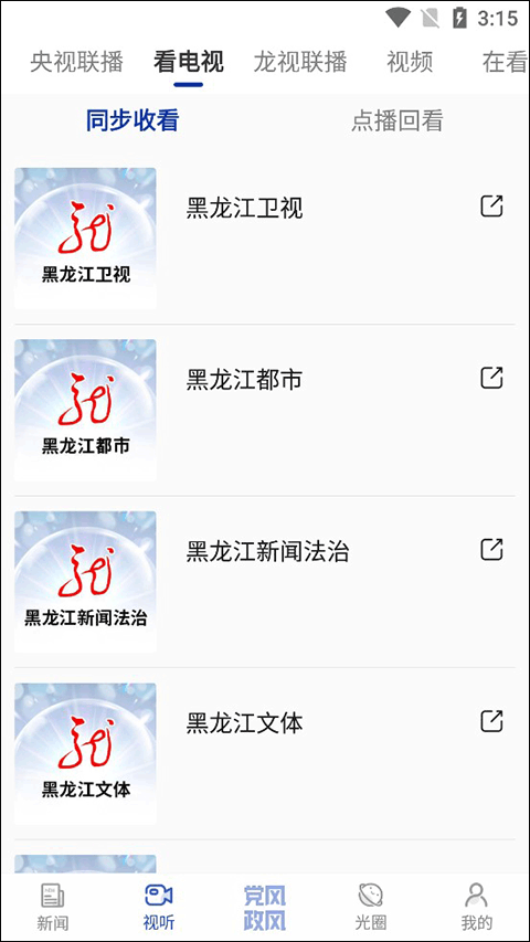 进入视听界面后我们可以看见底部又有非常多的分类,有看电视、龙视联播、视频等各种各样的分类入口,这个时候我们点击看电视;