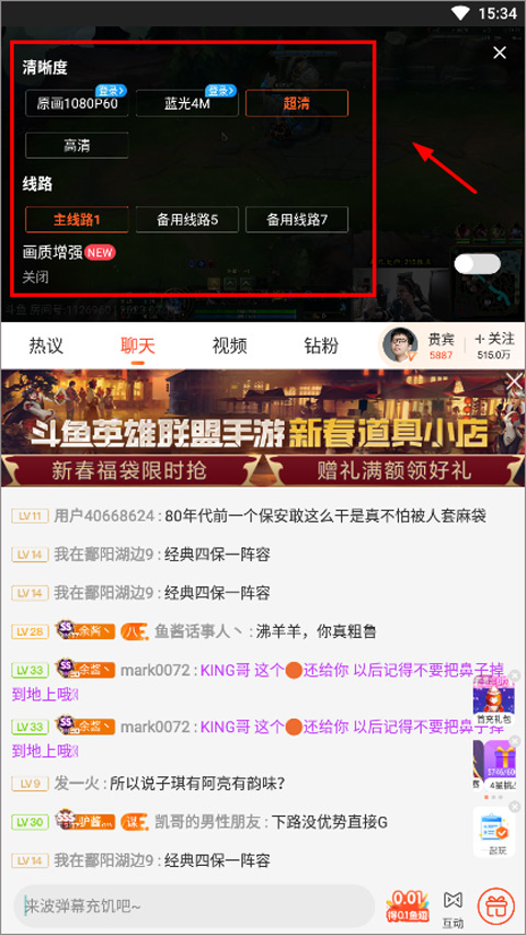4、其次还有线路的选项,通过线路的选择,找到观看人数更少的线路,能让直播的播放更加流畅,避免出现卡顿。