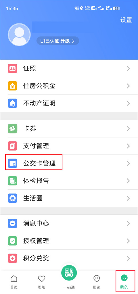 1、首先打开应用后,点击右下角“我的”,点击“公交卡管理”;
