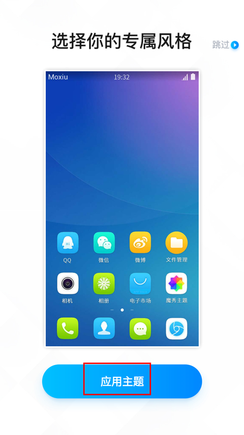 1、首先在手机上打开,将会让你选择应用主题,桌面也就因此有些变化;
