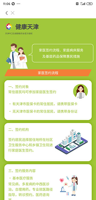 健康天津APP本期上线家医预约签约、家床申请预约和用药申请预约等三项预约服务功能,为市民提供家庭医生预约服务。已建立居民电子健康档案和签约居民可点击进入后,填写并提交相关预约信息。目前,按照工作安排,此项功能先期在两个区四个基层医疗卫生机构试点应用。