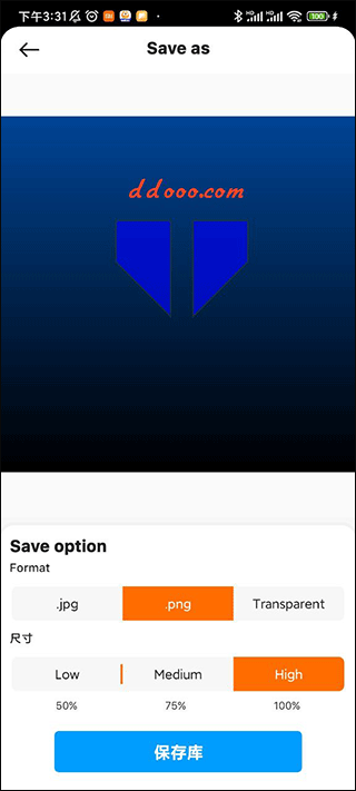 4、选择好获得logo图片的格式和尺寸点击保存库就可以了。