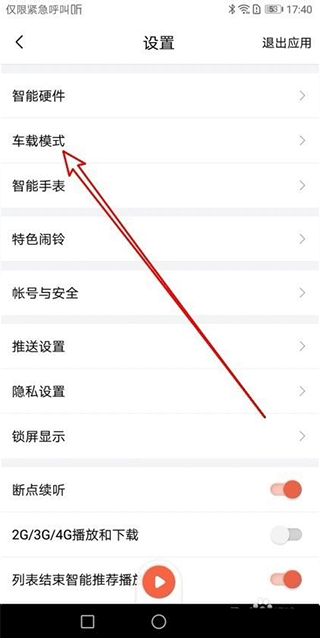 3、这时就会打开喜马拉雅app的设置页面,在页面中点击“车载模式”的菜单项。