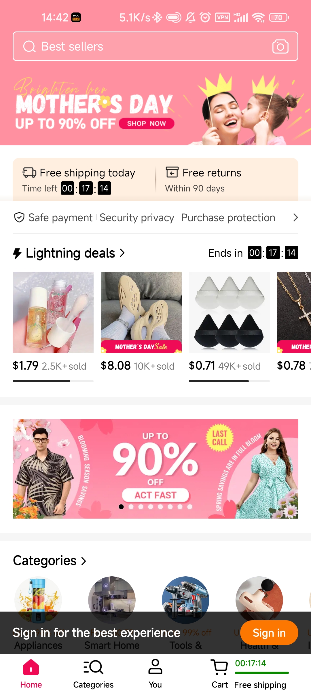 鞋子、衣服等商品最高可享受 70% 的折扣!