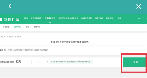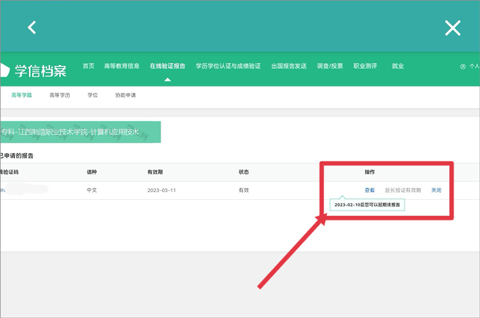 6、最后选择在线验证报告有效期后,并点击申请即可呈现上方第4条截图信息,然后点击查看即可