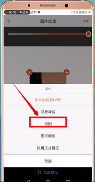 在下方弹出的选项中点击【抠图】;