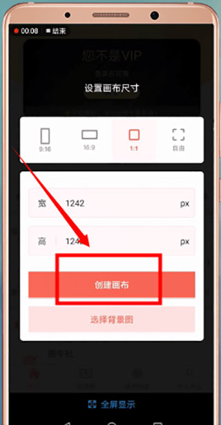 可以自定义画布尺寸,也可以选择背景图。我们按照默认的尺寸1242*1242设置;