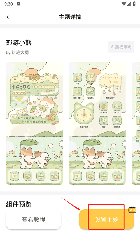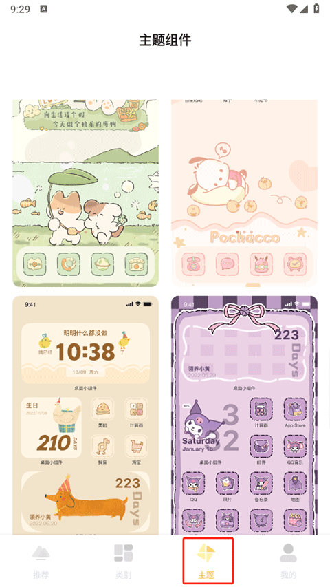 1、在主题界面内上方挑选你想添加的小组件,例如日历