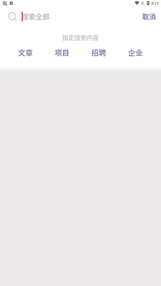 2、点击首页上方的搜索框架,输入相应的关键字即可找到自己想要的文章、项目、招聘职位、企业。