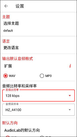 3、在设置当中,我们能够设置各种参数,包括语言、主题、采样率等等。