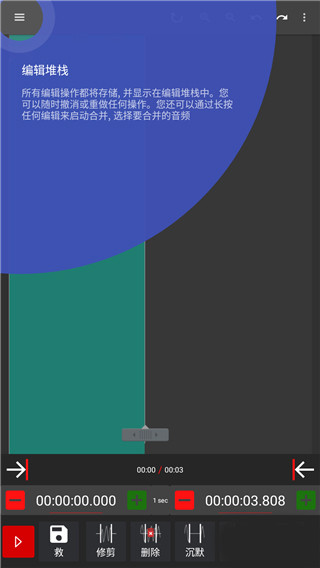 2、添加静音, 删除部分的音频, 复制粘贴音频与编辑堆栈的任何部分, 以轻松地浏览您的编辑, 并帮助您轻松撤消或重做您的工作。