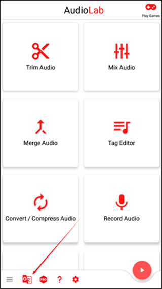 2、打开这款手机音频编辑软件可以看到软件默认是英文的,没事点击左下角语言切换图标。