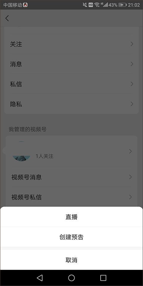 2、然后,在视频号设置界面找到并点击“发起直播”选项;