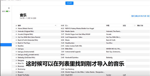 2、然后可以通过右侧的列表管理手机上的音乐;