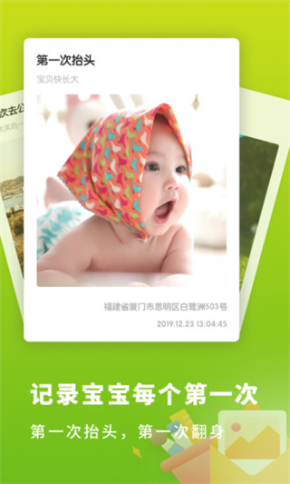 多种模板一键选择,从学会腹爬到躲猫猫再到学会走路,让记录变得更便捷,见证宝宝成长事件的一点一滴