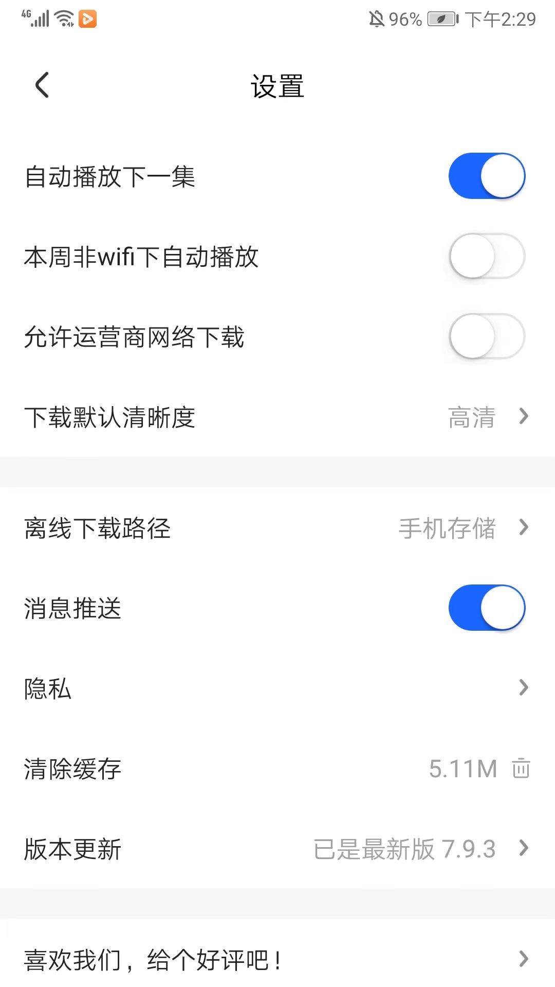 5、通过设置,我们可以进行播放、清晰度、下载、推送等相关的设置,以上就是央视影音鸿蒙版的使用说明了。