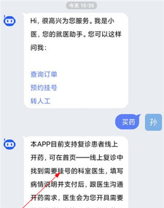 2、根据客服的提示即可在与医生沟通过程中购药。