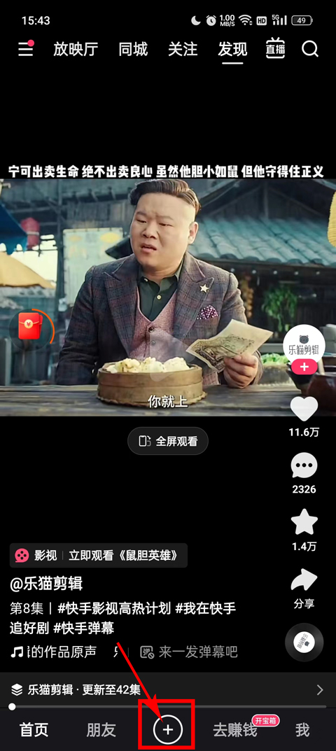 1、进入到软件首页之后,点击中间的“+”,拍摄视频或者添加视频;