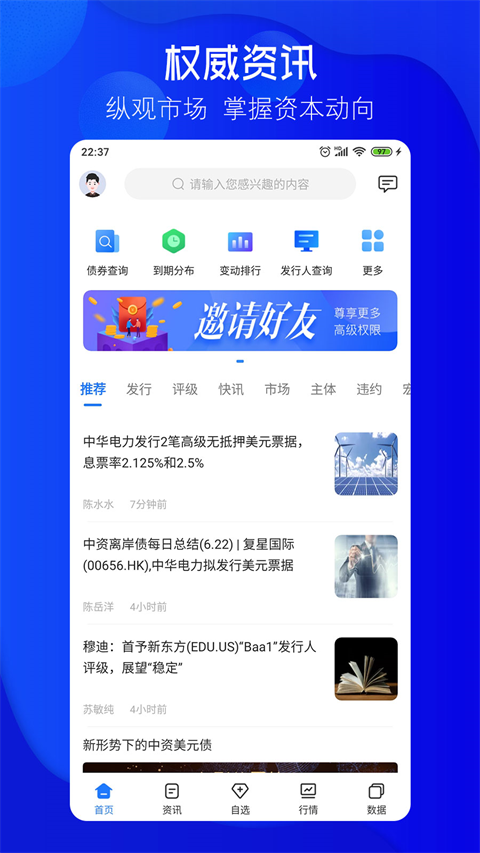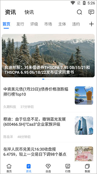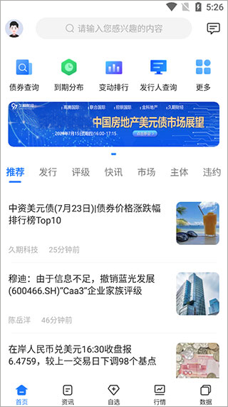 2、查看首页中推荐的各种行业新闻,快速了解更多的债券信息;
