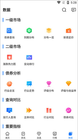 4、应用中有主体对比、行业对比和债券对比三种对比方式,满足不同用户需求;