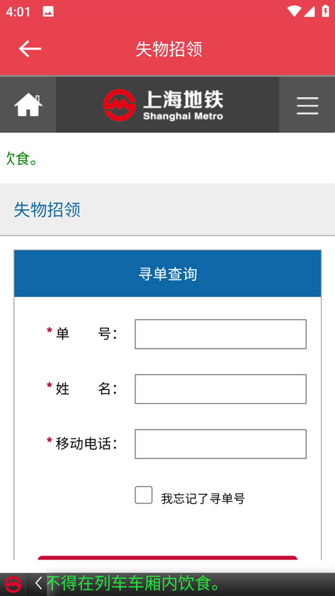 上海地铁找到乘客的“寻单”遗失物品,会发送短信提醒乘客登陆上海地铁官方网站查询认领。
