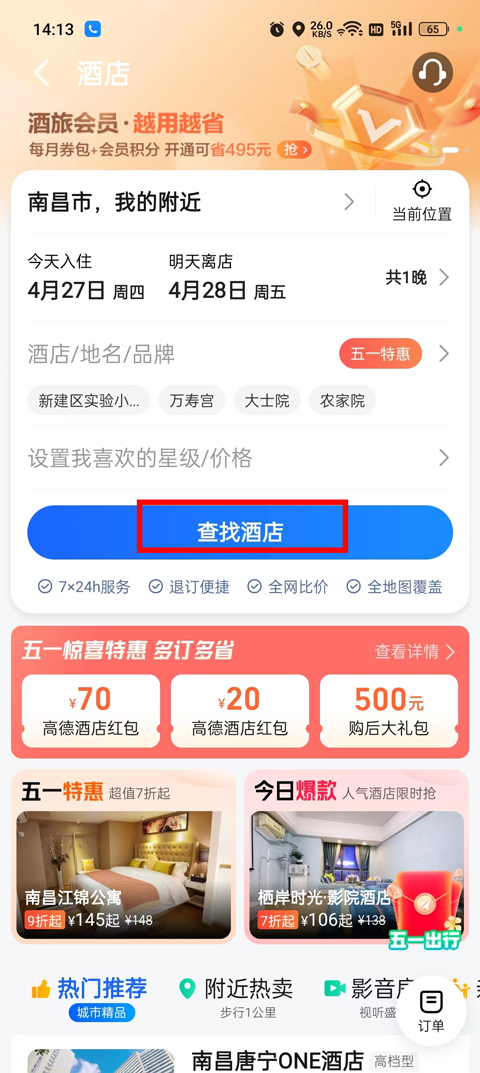3、各种热门推荐和附近热卖房型火热推荐;